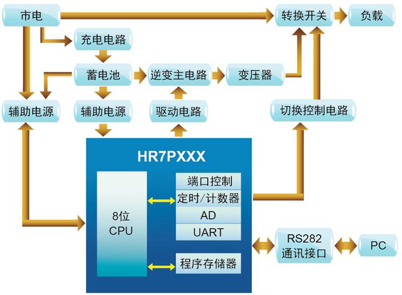 功能說明: ①市電與UPS同步轉換。 ②通過PWM閉環調節輸出電壓。 ③蓄電池充電,智能調節。 ④通過串口實現與PC通訊。 | 特征說明: ①體積小。 ②電源轉換效率高。 ③具有較完善的自我保護系統,如:電池電壓較低緊急警告、過流和短路保護、放電結束保護等。 |