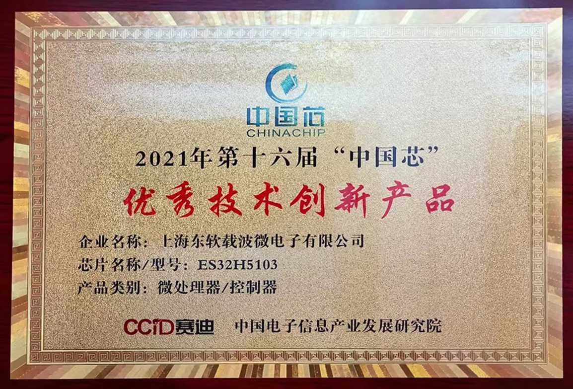 在本次大會上,中國電子信息產(chǎn)業(yè)發(fā)展研究院集成電路研究所所長王世江公布了“中國芯”第十六屆優(yōu)秀技術(shù)產(chǎn)品名單。其中,上海東軟載波微電子有限公司一款高性能、低功耗MCU芯片產(chǎn)品——”ES32H5103芯片”榮獲2021年第十六屆中國芯“優(yōu)秀技術(shù)創(chuàng)新產(chǎn)品”獎。
